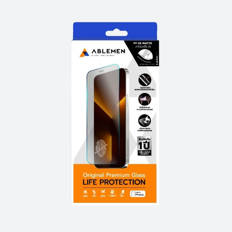 - Ablemen FF 2X Matte กระจกนิรภัยกันรอยหน้าจอ แบบผิวด้าน ผลิตจากกระจกญี่ปุ่นเกรดท็อป ชนิดแข็งแกร่งพิเศษ