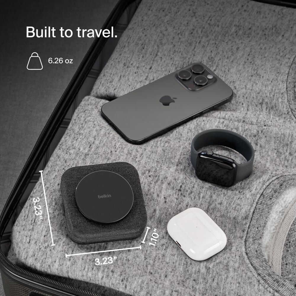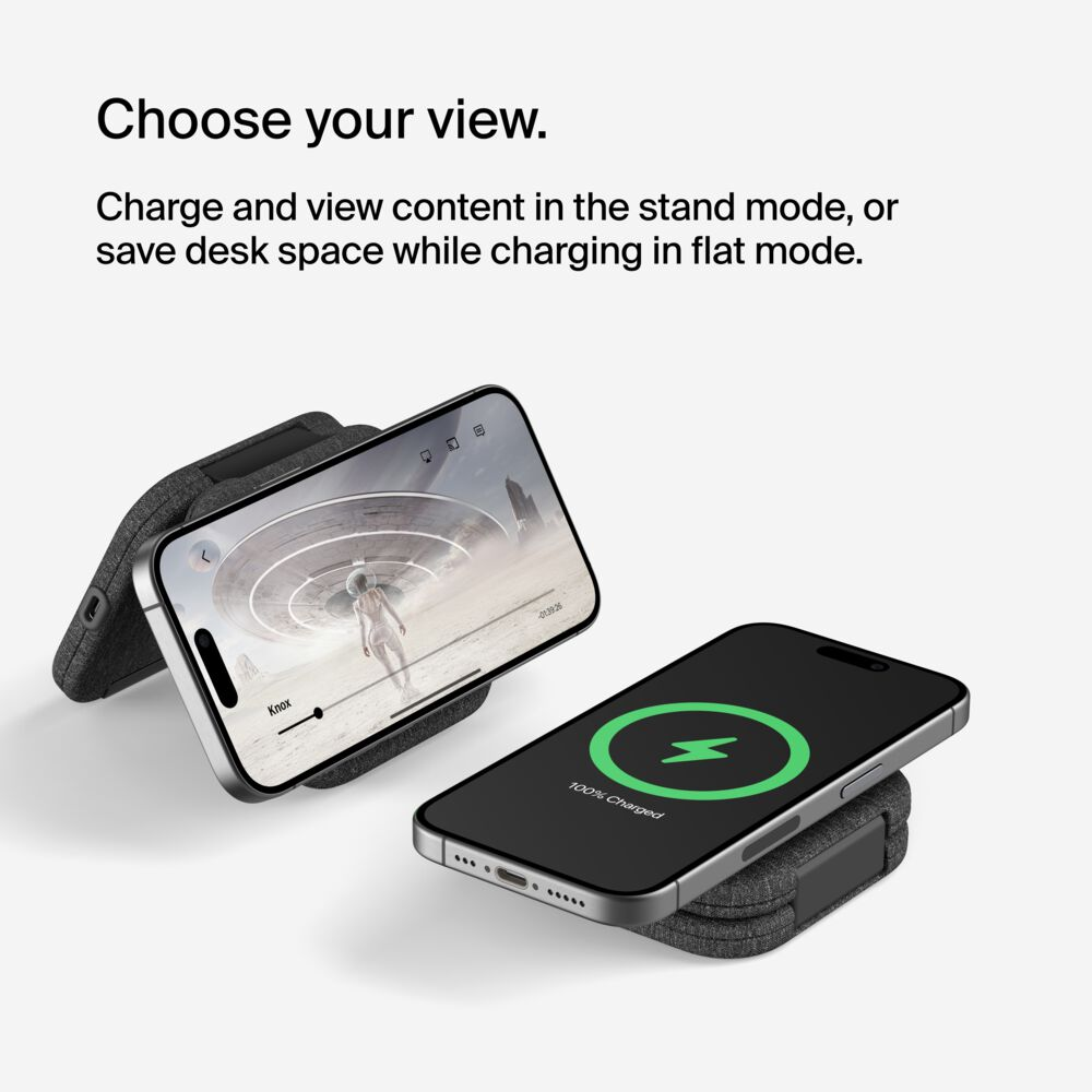 - 2-in-1 Magnetic Charging Travel Pad with Qi2 15W (WIZ026th) แท่นชาร์จ Magnetic แบบพับเก็บ-กางได้อิสระ ดีไซน์เรียบหรู เหมาะแก่การพกพาไปใช้งานท่องเที่ยว จาก Belkin แบรนด์ผู้ผลิตอุปกรณ์เสริมชั้นนำจากสหรัฐอเมริกา (USA)