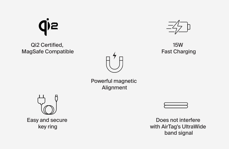 - มาพร้อมมาตรฐานการชาร์จใหม่ Qi Wireless Charge 2 (Qi2) ที่มีมาตรฐาน ใช้งานได้อย่างมั่นใจ ทำให้อุปกรณ์ Smartphone ที่รองรับมาตรฐานนี้ เช่น iPhone 16/15/14/13/12 Series จะสามารถชาร์จแบบ Magnetic ได้ที่กำลังไฟสูงสุดถึง 15W รวมไปถึง Smartphone แบรนด์อื่น ๆ หรือหูฟัง AirPods / TWS ที่รองรับการชาร์จไร้สายแบบ Qi ก็ใช้งานได้เช่นเดียวกัน