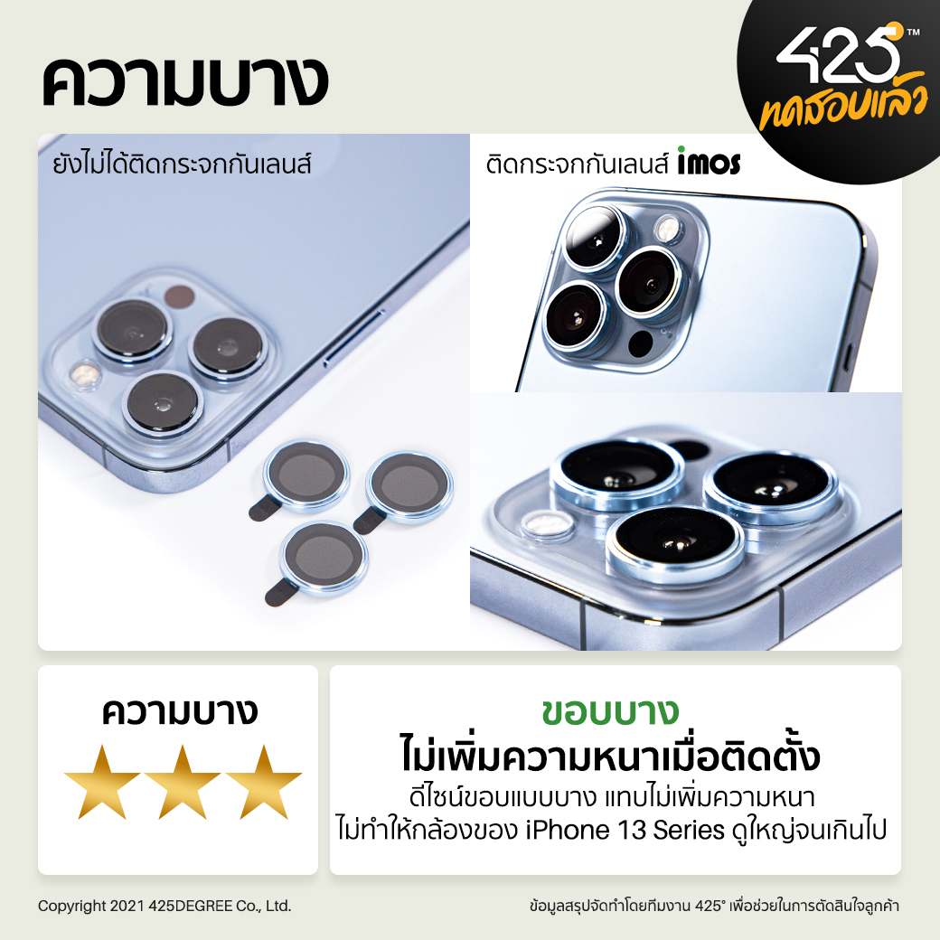- ทีมงาน 425° ขอแนะนำ imos Sapphire Lens Protector กระจกกันเลนส์ที่ดีที่สุดทุกด้าน สำหรับใครที่อยากได้กระจกกันเลนส์ที่มีความแข็งแกร่ง ทนรอยได้ดีเป็นพิเศษ และดีไซน์สีที่สวยตรงกับตัวเครื่องแนะนำเป็นตัวนี้เลยครับ