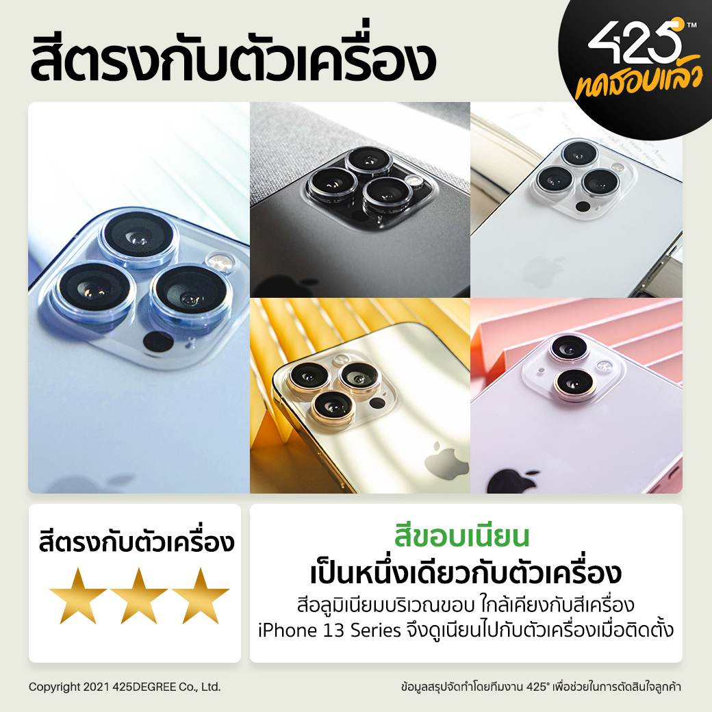 - วัสดุของกรอบเลนส์เป็น Aluminium ที่ผ่านการทำสีให้ใกล้เคียงกับตัวเครื่องของ iPhone คงความสวยงามของตัวเครื่องได้เป็นอย่างดี