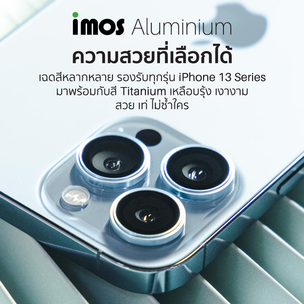 - รุ่นนี้กรอบเลนส์จะเป็นกรอบ Aluminium ขอบมีความบาง ติดไปแล้วจะดูเรียบเนียนไปกับตัวเครื่องไม่ทำให้ดูหนาขึ้น อีกทั้ง imos ได้ดีไซน์สีขอบออกมาได้ตรงกับหลังตัวเครื่อง iPhone มากที่สุด มาพร้อมเฉดสีพิเศษอย่าง Titanium สีเหลือบรุ้ง เป็นเฉดสีที่สามารถเข้าได้กับทุกสีเครื่องตกแต่งได้อย่างสวยงาม