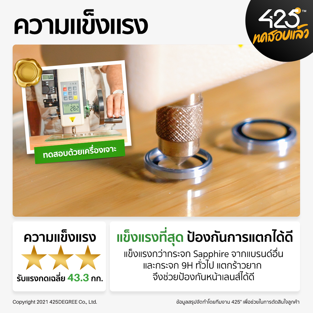 - ผิวกระจกมีความแข็งถึงระดับ 9 Mohs Scale ซึ่งถือว่าดีกว่าอย่างเหนือชั้นเมื่อเทียบกับกระจก Tempered Glass 9H ทั่วไป