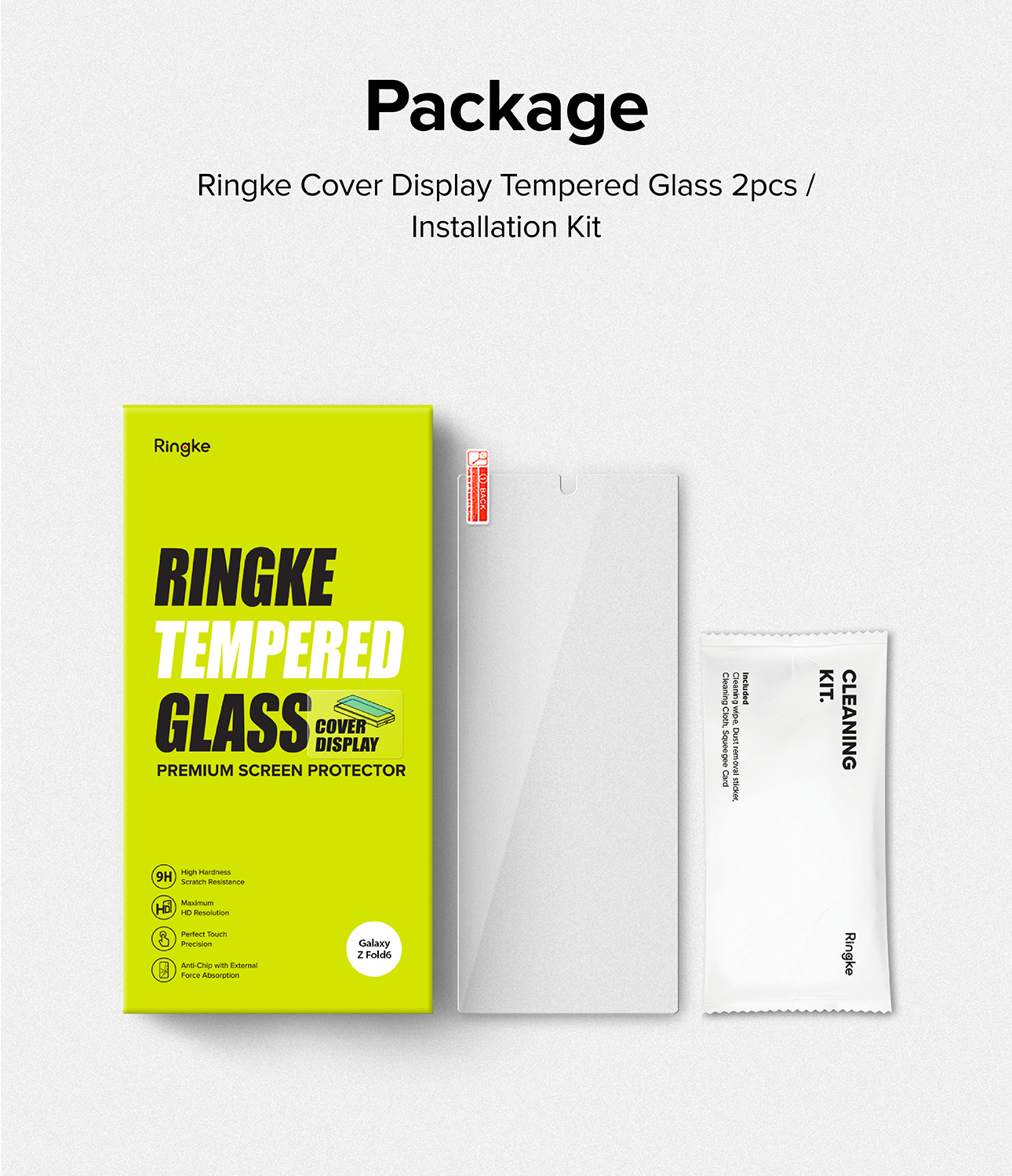 - Ringke Cover Display Protector Glass ฟิล์มกระจกนิรภัย สำหรับหน้าจอด้านนอก Galaxy Z Fold6 จำนวน 2 แผ่น ช่วยให้ติดตั้งและใช้งานได้อย่างมั่นใจ