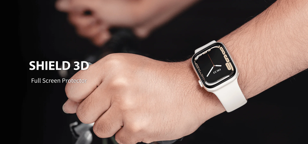 - ตัวฟิล์มมีขอบเป็นสีดำ เพื่อให้เนียนไปกับสีของกระจกหน้าจอ Apple Watch และยังช่วยปกปิดคราบกาวหลังจากที่ติดได้อีกด้วย ซึ่งถ้าเป็นขอบแบบใสก็อาจจะเห็นคราบกาวได้ชัดกว่า