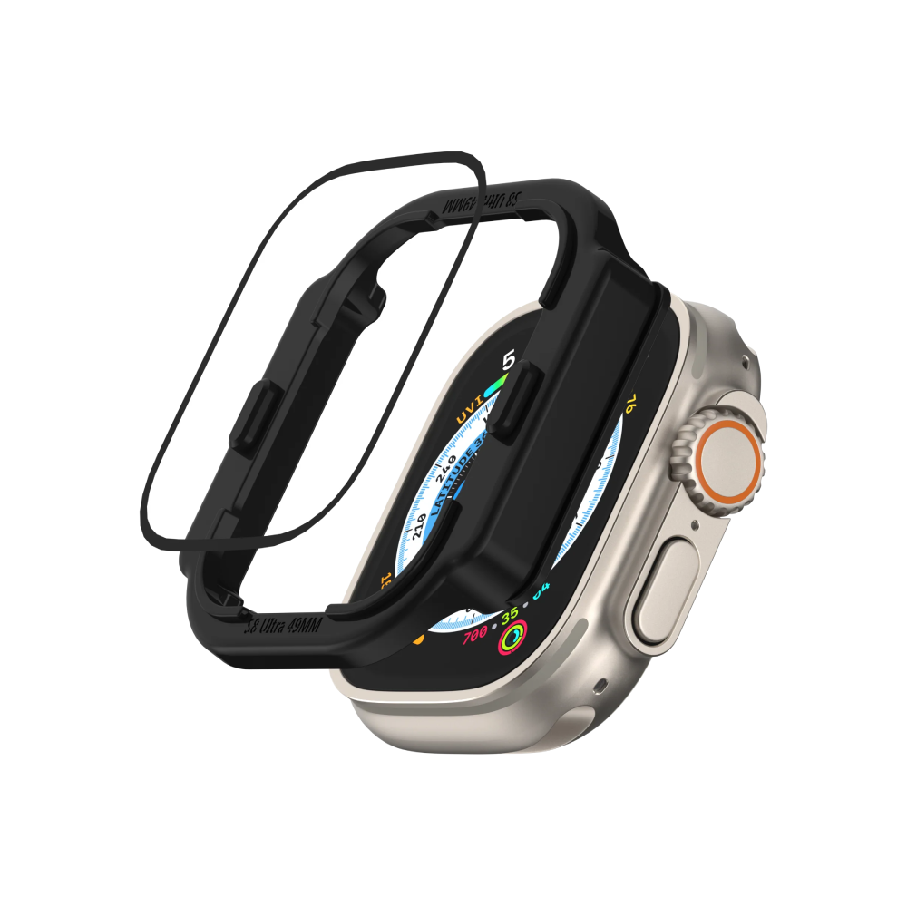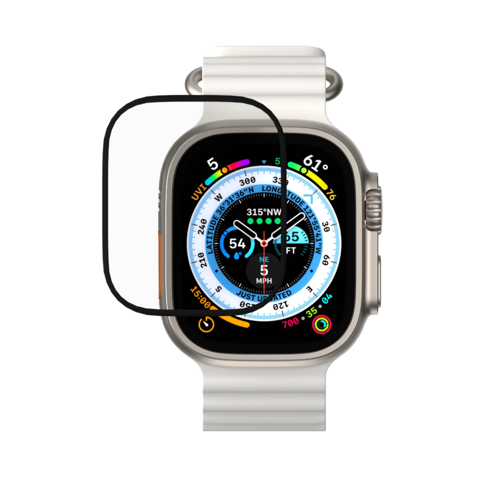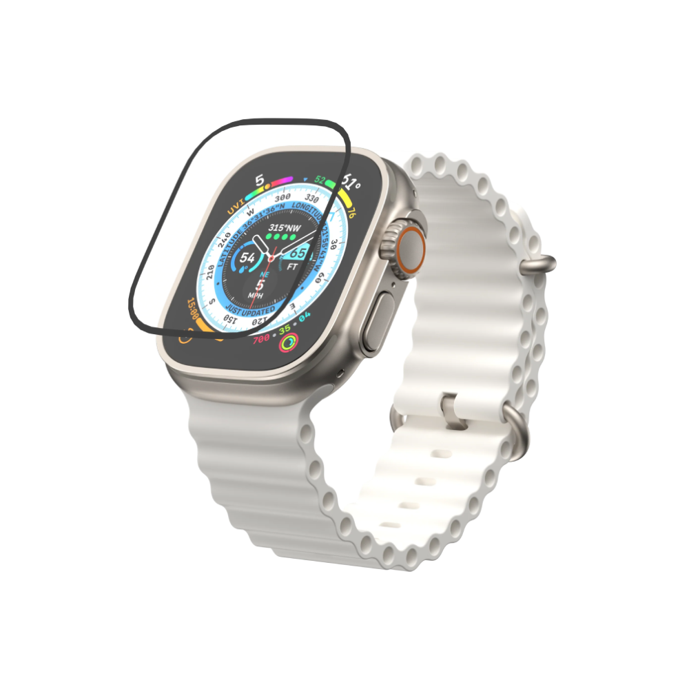 - Switcheasy Shield 3D Hybrid Glass Screen Protector ฟิล์มกันรอยครอบคลุมเต็มหน้าจอสำหรับ Apple Watch Ultra ขนาด 49mm.