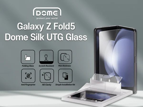 - Dome Janus Ultra Thin Glass เป็นฟิล์มกระจกนิรภัยพิเศษตัวเดียวที่สามารถงอหรือพับได้ สำหรับป้องกันหน้าจอด้านใน ออกแบบมาสำหรับ Samsung Galaxy Z Fold5 จากแบรนด์พรีเมียม Whitestone ประเทศเกาหลีใต้