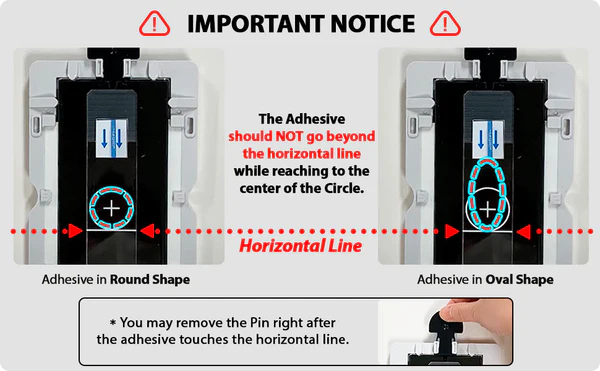- ***เนื่องจากกาวจะทำปฏิกิริยากับแสง UV และจะแข็งตัวได้ จึงควรติดตั้งในที่ที่ไม่มีแสงแดดส่องเข้ามาโดยตรง เช่น ควรปิดผ้าม่านก่อนติดตั้ง ไม่ติดตั้งในที่โล่งแจ้ง