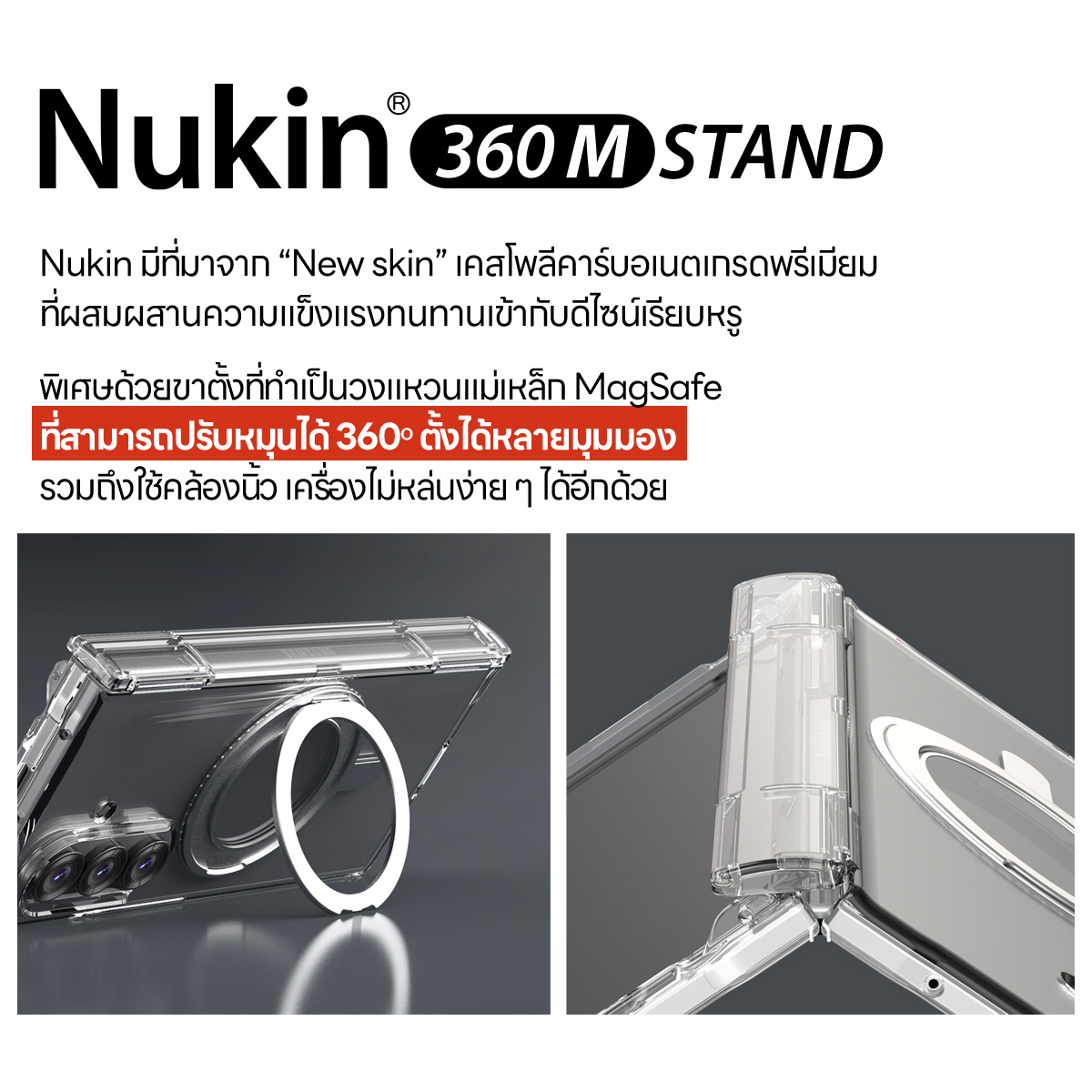 - Nukin 360 M stand ซีรีส์เคสพร้อมขาตั้งที่เน้นการปกป้องเครื่องได้ครบทุกมุม โดยมีชิ้นส่วนพิเศษป้องกันบริเวณบานพับ ทำให้ใช้งานได้อย่างสบายใจ