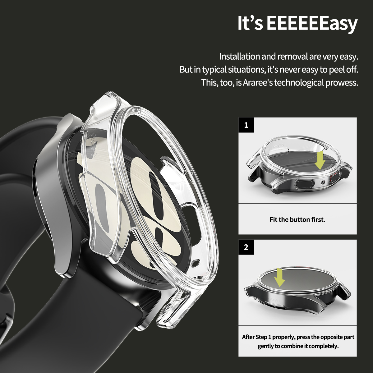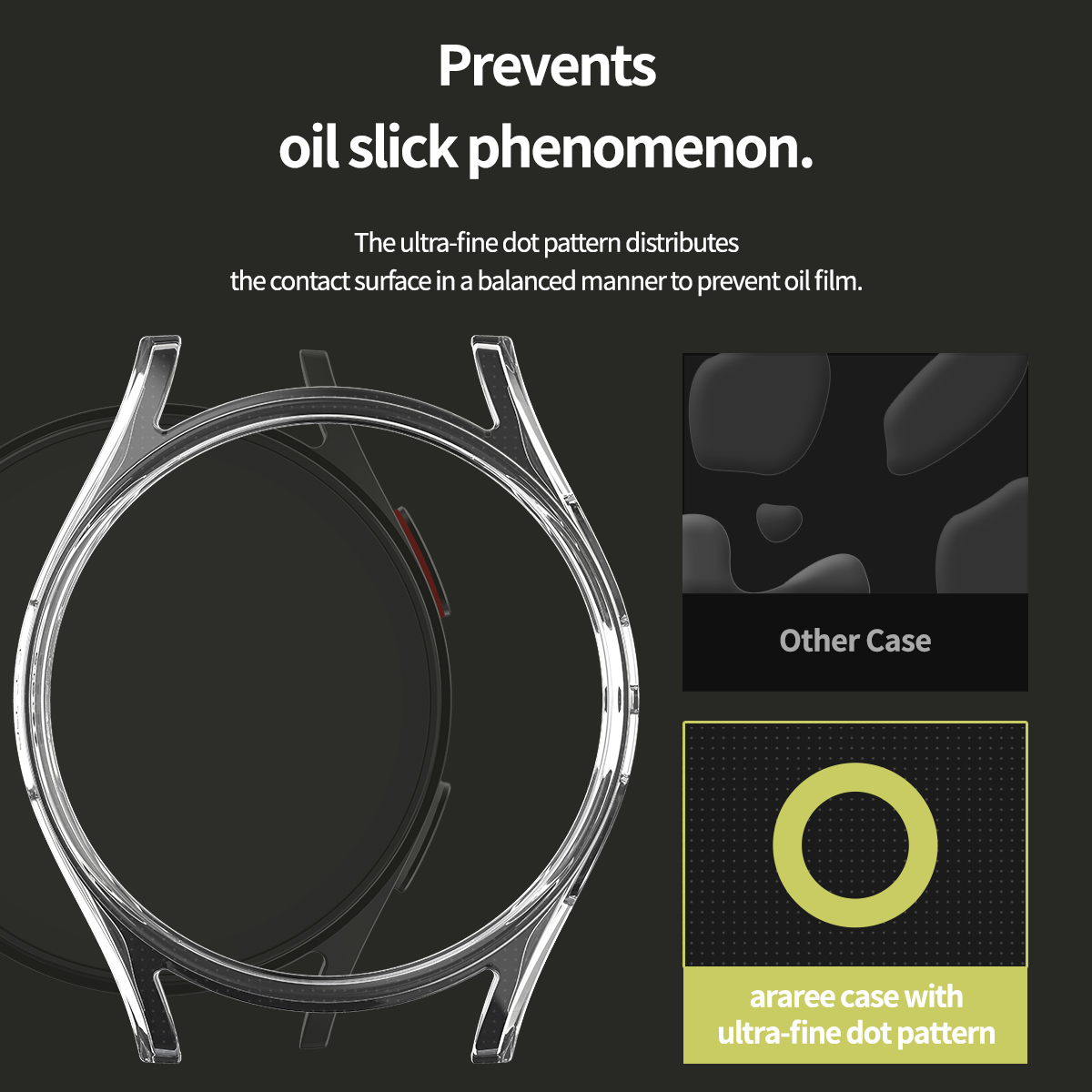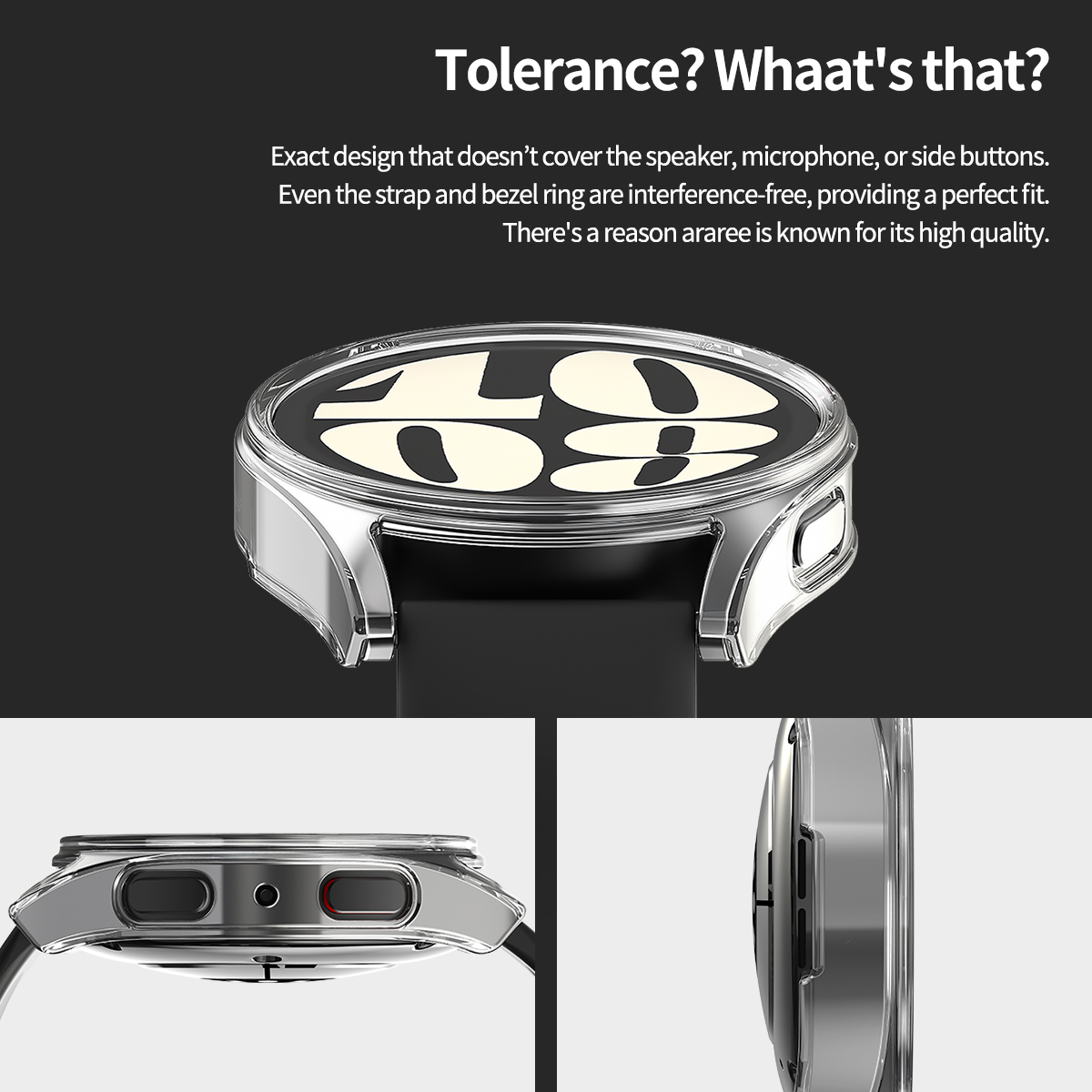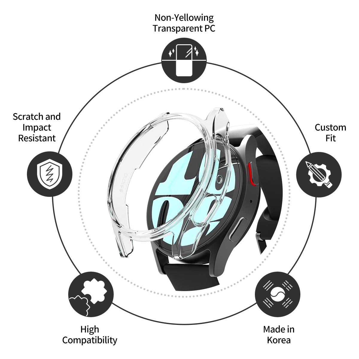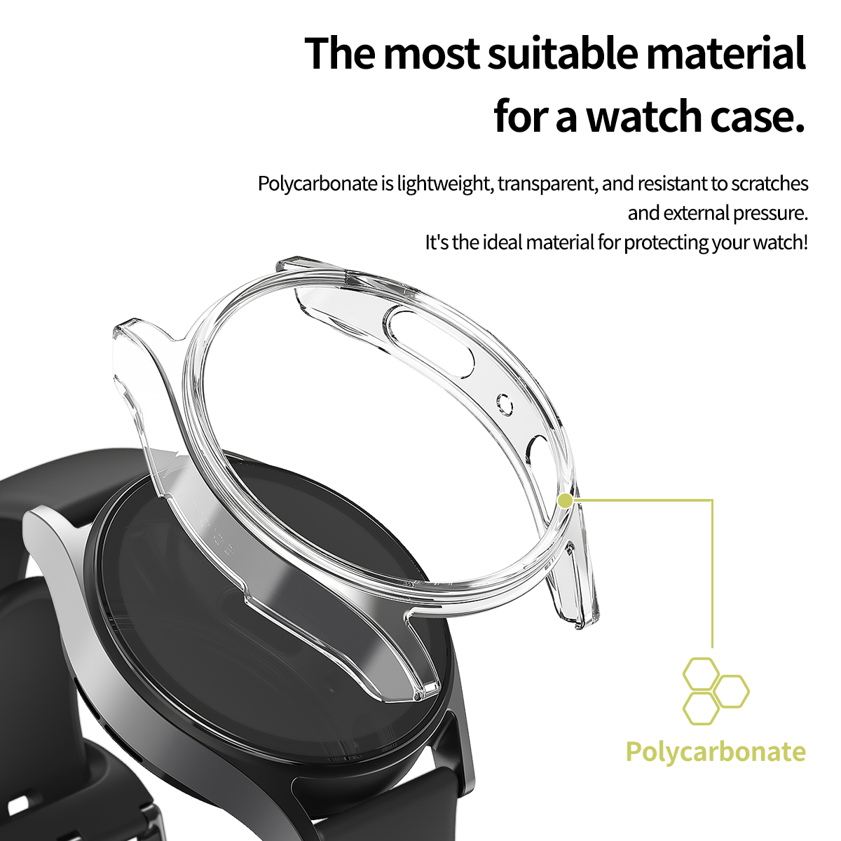 - เคสดีไซน์มินิมอล มีความเรียบง่าย โทนสีใส โชว์สีสันและรายละเอียดของตัวเรือน Galaxy Watch ได้อย่างชัดเจนสวยงาม