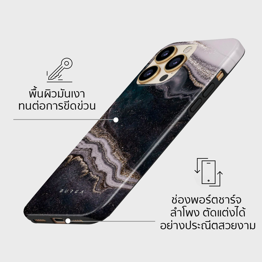 - สำหรับใครที่กำลังมองหาเคส iPhone 13 Series สำหรับใช้งานทั่วไป ไม่เน้นเรื่องกันกระแทกมากนัก แต่มีลายสวยโดดเด่น Burga Tough Case เป็นตัวเลือกที่ดีทีเดียวครับ ด้วยงานผลิตที่ทางแบรนด์ให้ความสำคัญ จึงทำให้ลวดลายบนเคสมีความคม สีชัดเป็นพิเศษ ชนิดที่ว่าเห็นในรูปสวยขนาดไหน ของจริงก็เป็นแบบเดียวกันเลยครับ รับรองว่าไม่ผิดหวังแน่นอน