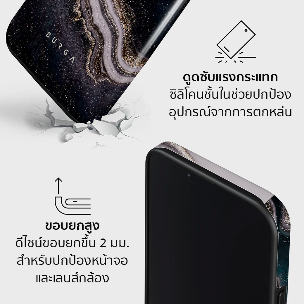 - ตัวเคส Burga Tough Case มาพร้อมกับดีไซน์หรู มีเอกลักษณ์ด้วยลวดลายสกรีนสไตล์แฟชั่น