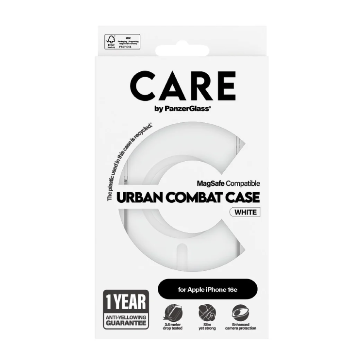 CARE by PanzerGlass Flagship Urban Combat Case Transparent with White Magsafe - เคส iPhone 16e