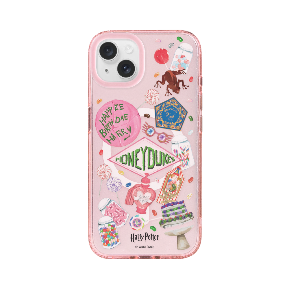 - ดีไซน์ตัวเคสมาในสีชมพูกลิตเตอร์ให้ความระยิบระยับ และลวดลาย Honeydukes ด้านหลังสุดน่ารัก