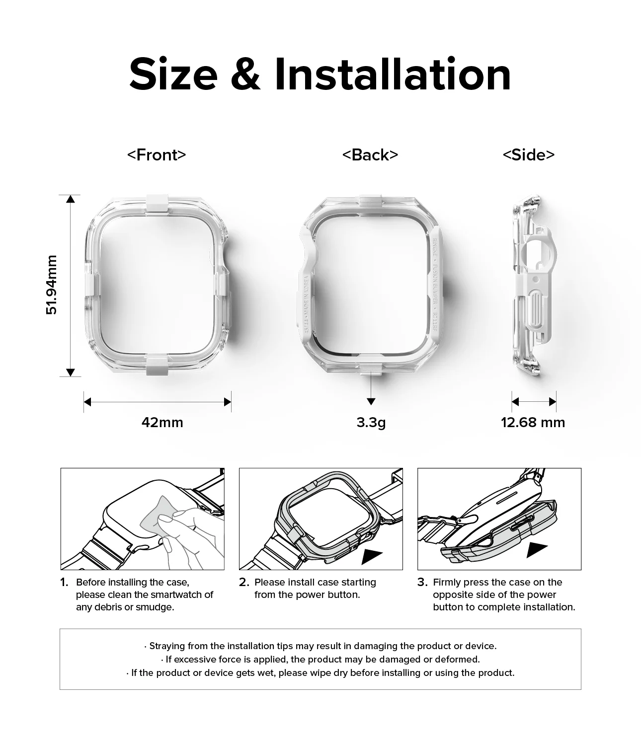 - การถอดเคส แนะนำให้เริ่มถอดสาย Apple Watch ออกก่อนทุกครั้ง แล้วจึงถอดออกโดยเริ่มจากง้างด้านข้างขอบเคสข้างใดข้างหนึ่ง และค่อยๆ นำเครื่องออกครับ