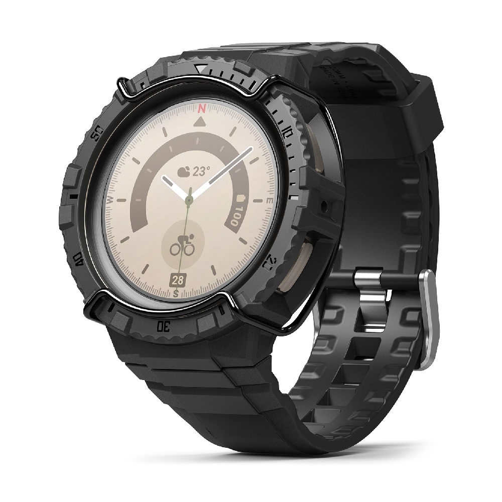 - Fusion-X Guard Wire ชุดสายพร้อมเคสดีไซน์ดุดันพร้อมลุย สำหรับ Galaxy Watch 5 Pro 45 mm ประกอบด้วยสายและเคสจากวัสดุยาง (TPU) และชิ้นขอบ (Bezel) ที่ผลิตจากวัสดุพลาสติกแข็ง (PC) พร้อมกันชน (Wire Guard) จากวัสดุ Stainless Steel