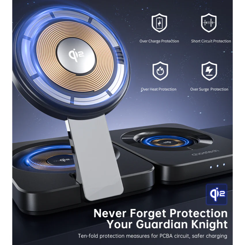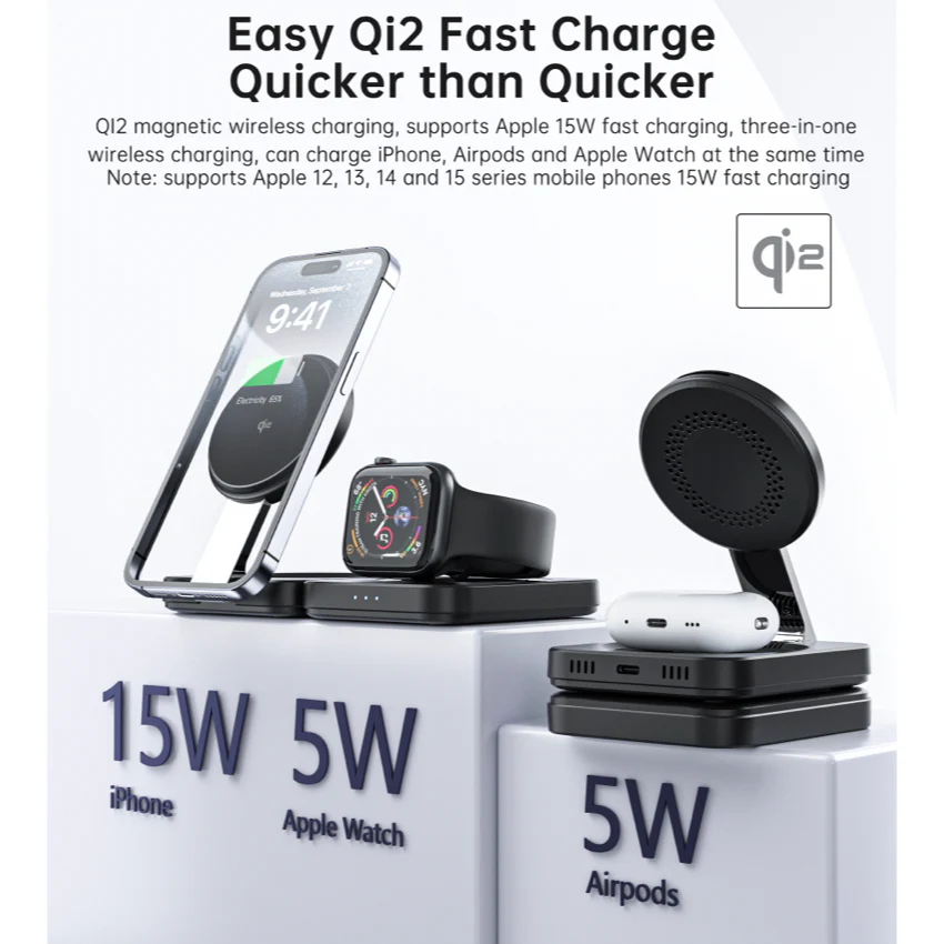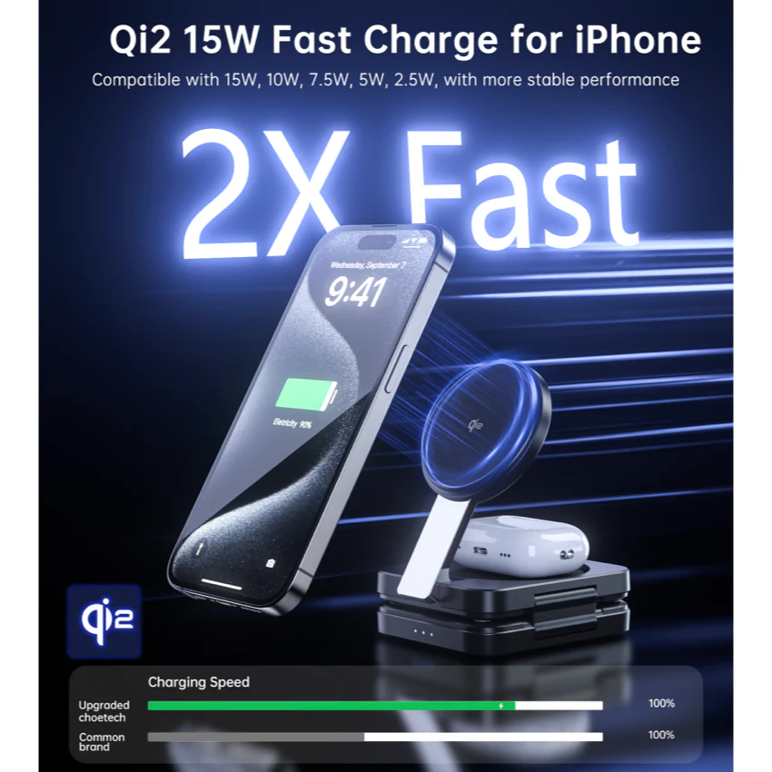 - Choetech Qi2 3 in 1 Travel Wireless Charger 15W x 1