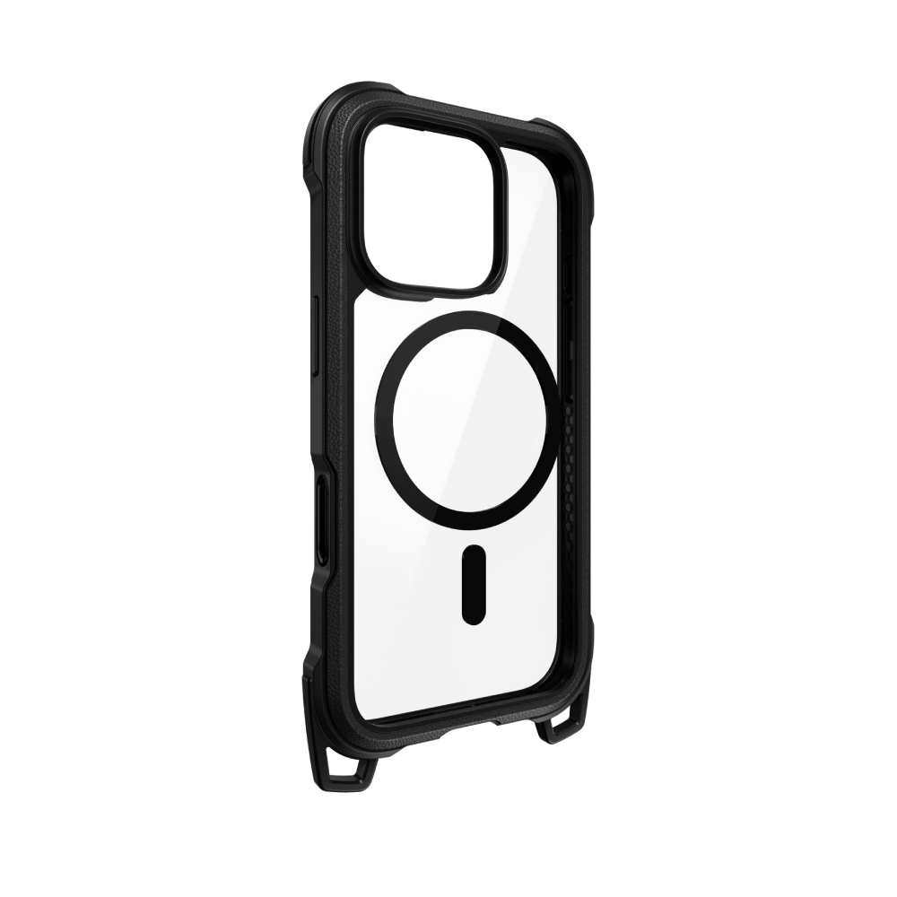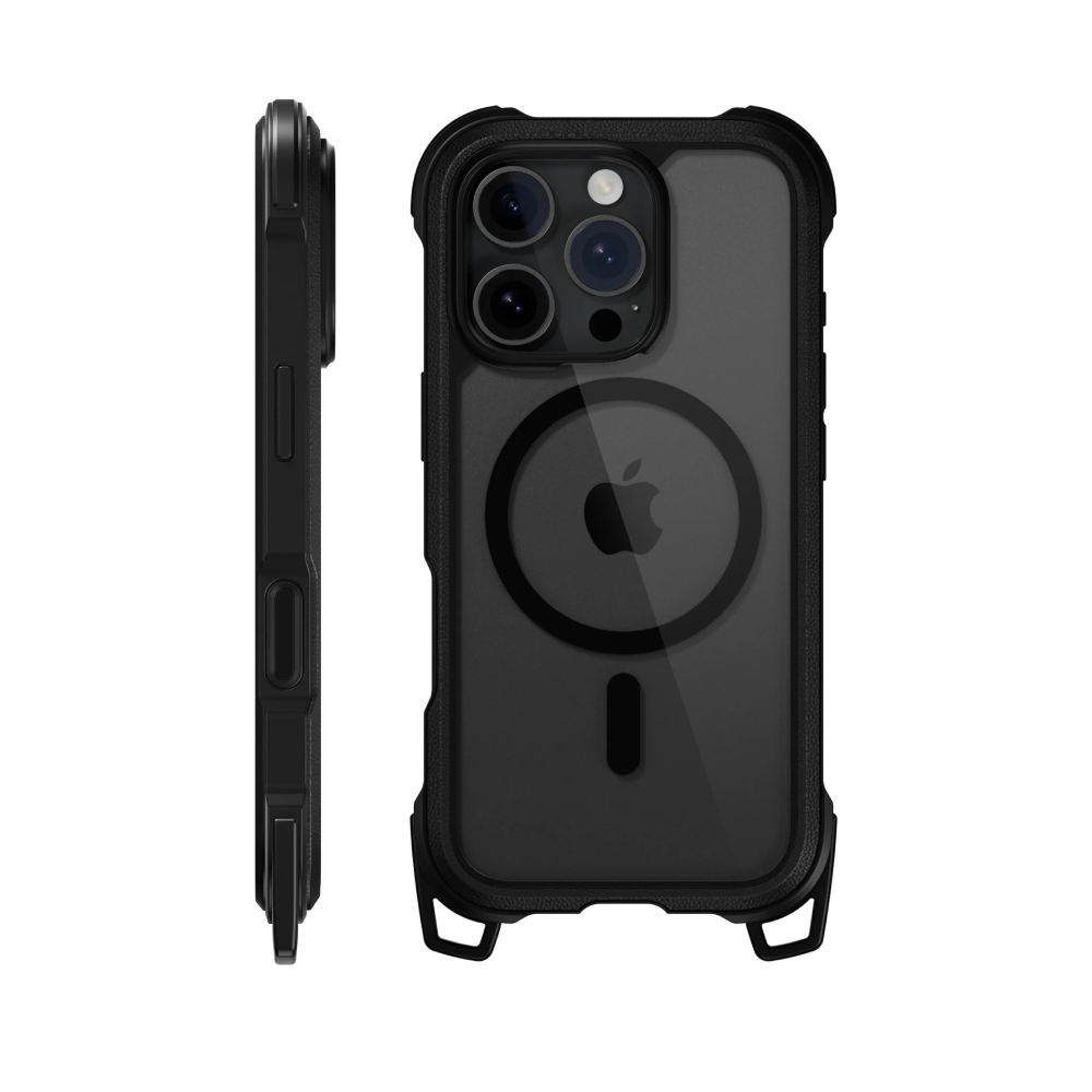 MAGEASY Odyssey Strap M Rugged Utility Protective Case with Lanyard Camera Control Edition เคสพร้อมสายคล้องมือ iPhone 16 Pro - Leather Black/ Black