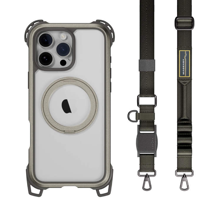 MAGEASY Odyssey Ultra M 360 Magnetic Stand Guard Protective Case with Fidlock Lanyard Camera Control Edition เคสพร้อมสายคล้องมือ iPhone 16 Pro Max - Titanium