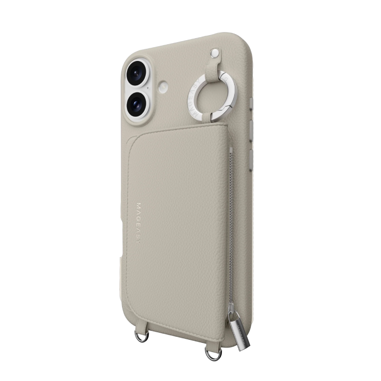 MAGEASY Pouch M Wallet Phone Case with Stand เคสพร้อมสายคล้องมือ iPhone 16 Plus - Starlight