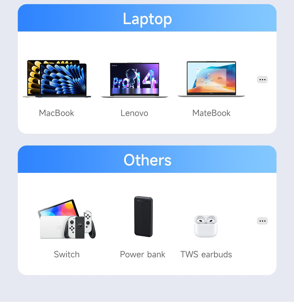 - Smartphone Android, Laptop รวมถึงอุปกรณ์ทั่วไปที่ใช้พอร์ตแบบ USB-C