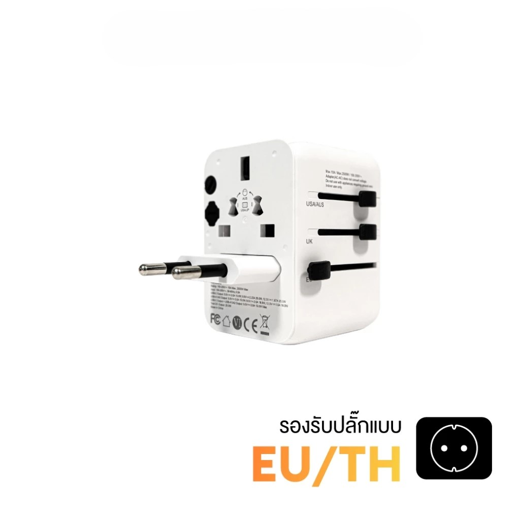 - **Travel Adapter ตัวนี้ไม่สามารถแปลงแรงดันไฟฟ้าได้ เมื่อไปต่างประเทศแล้วจะนำอุปกรณ์ไฟฟ้ามาเสียบใช้ ต้องเช็คอีกทีว่าประเทศนั้น ๆ ใช้แรงดันไฟฟ้ากี่ V และตรงกับที่อุปกรณ์ไฟฟ้ารับได้หรือไม่ มิฉะนั้นอาจเกิดอันตรายกับเครื่องใช้ไฟฟ้าและผู้ใช้งานได้ครับ