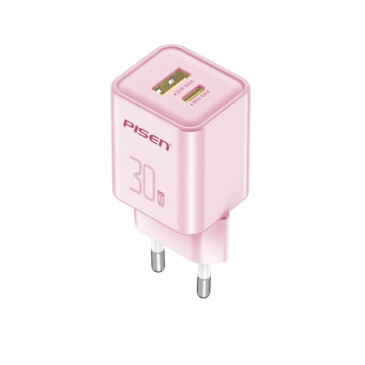 PISEN Quick GaN Type-C+USB-A 30W Fast Wall Charger (Adapter 1Type-C | 1Type-A | PD | PPS | QC3.0 | GaN | 30W) - Pink