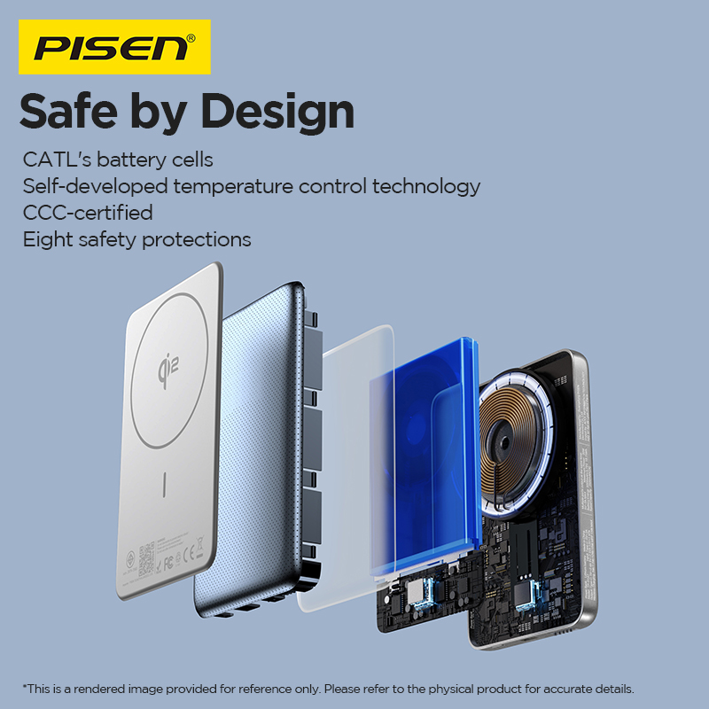 - PISEN SleekVolt 20W Wireless Powerbank (TP-D148) แบตสำรองชาร์จไร้สายแบบ Magnetic Qi2 ความจุ 10,000mAh แบบเน้นความเบาบางพิเศษ (Slim and Portable) แม้จะมีความจุสูง แต่บางเพียง 1.4 cm