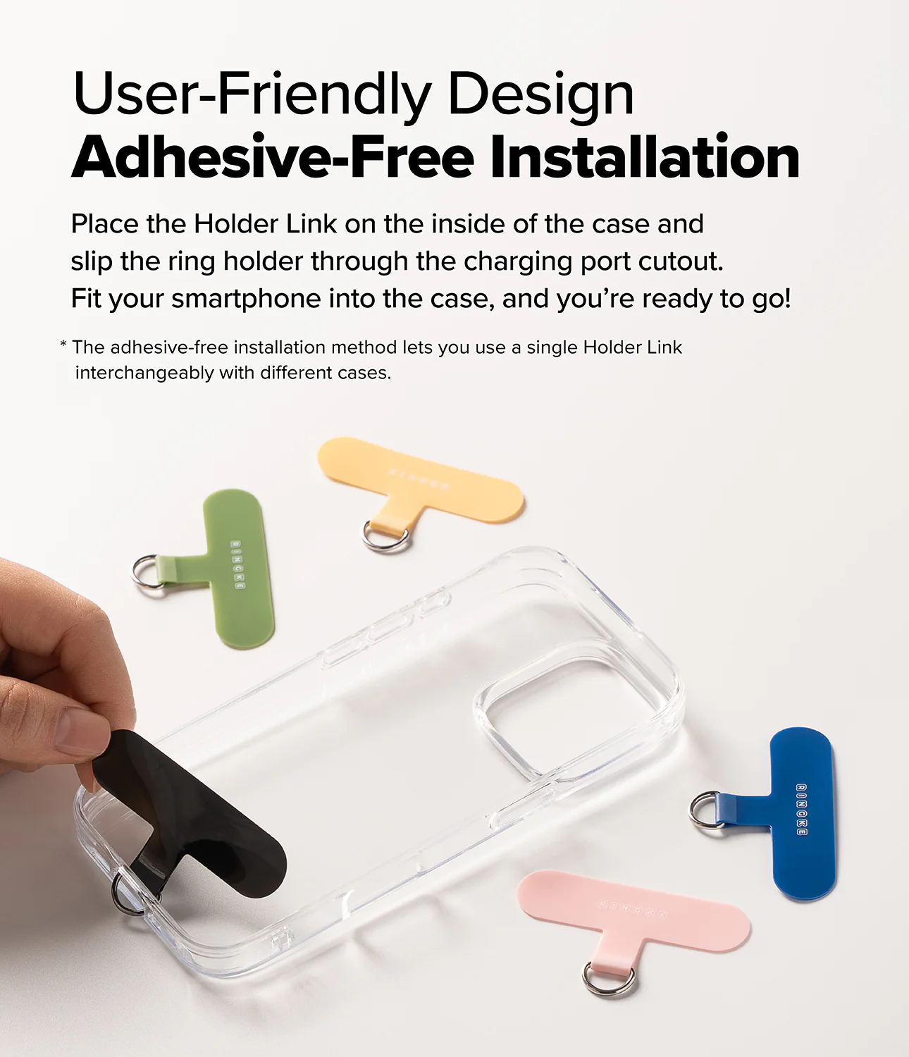 - Holder Link ออกแบบมาให้สามารถใช้ร่วมกับเคสได้อย่างหลากหลาย และไม่บดบังบริเวณช่องชาร์จ
