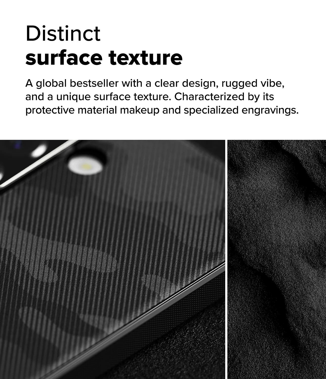 - แผ่นหลังของเคส ถูกออกแบบให้มีพื้นผิวขรุขระ ช่วยลดโอกาสเสี่ยงในการลื่นหลุดจากมือ รวมถึงช่วยให้มองเห็นรอยขีดข่วนเล็ก ๆ หรือเกิดรอยนิ้วมือได้ยาก