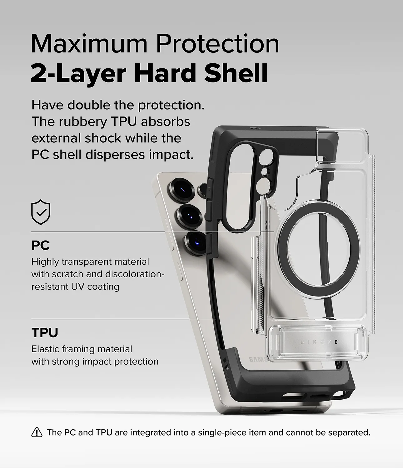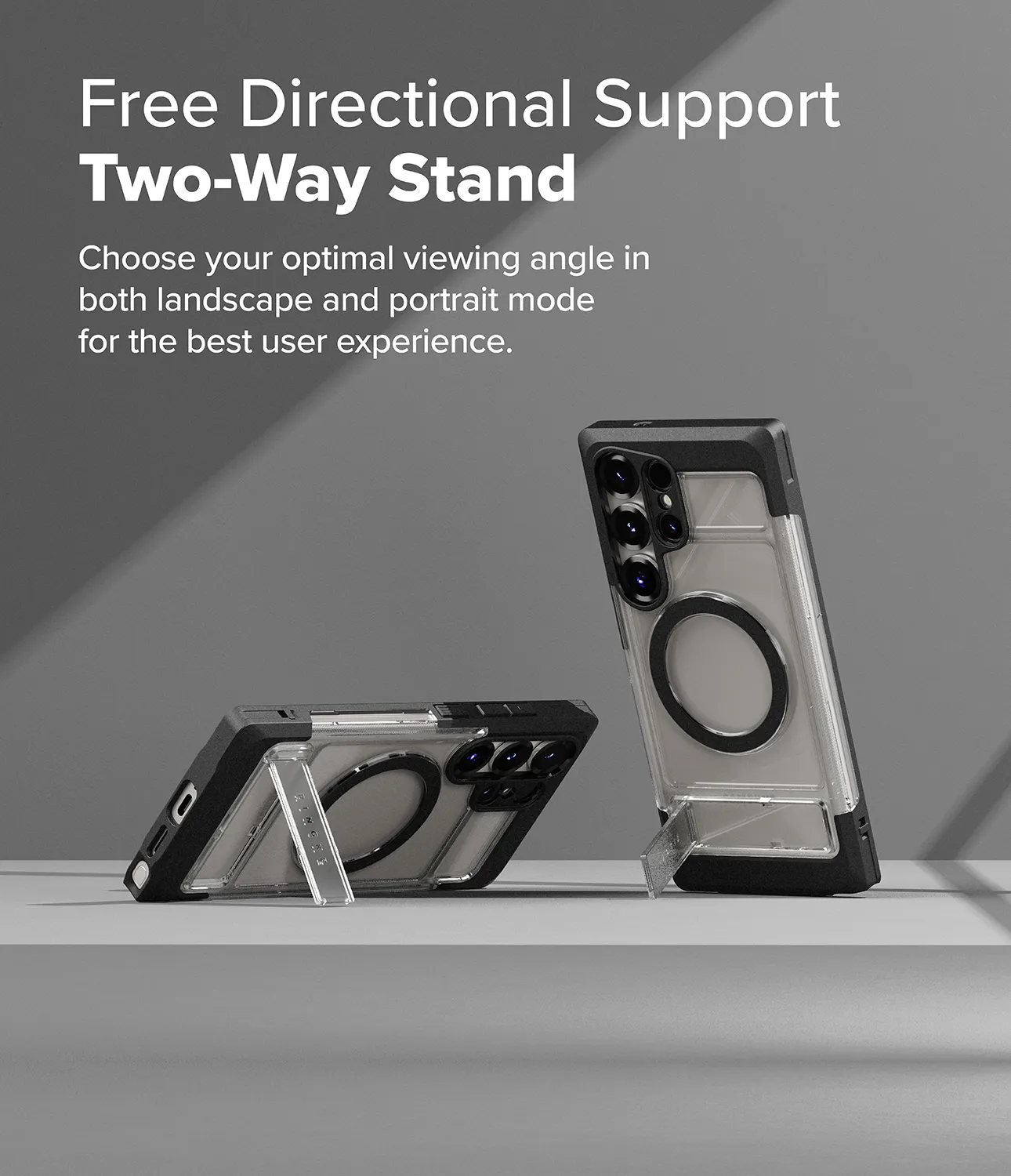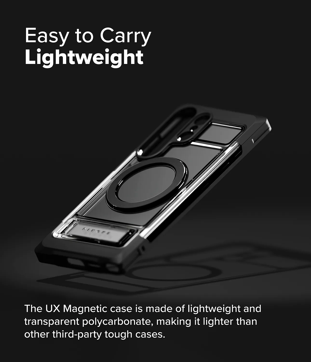 - ดีไซน์ตัวขาตั้งวัสดุ PC แบบ Matte มีการสลักโลโก้ Ringke ไว้อย่างชัดเจนสวยงาม และกางตั้งใช้งานได้อย่างมั่นคงแข็งแรง