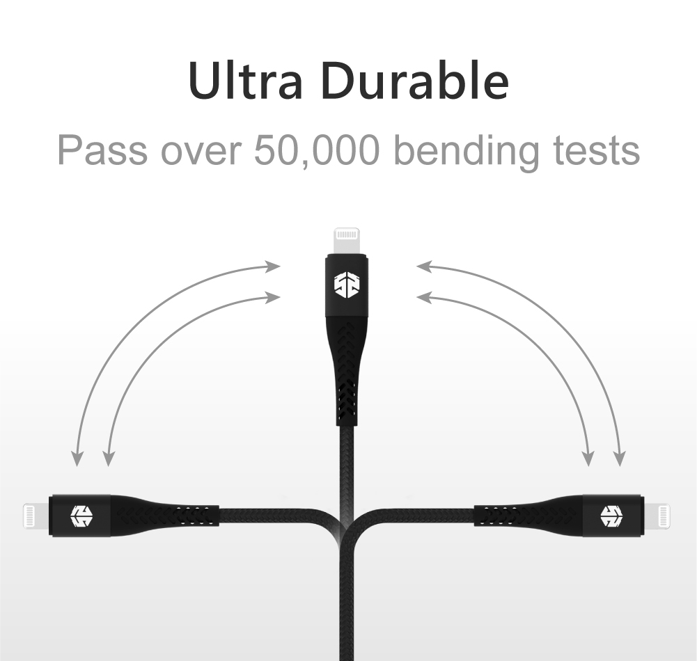 - ด้านในสายใช้วัสดุ DuPont™ Kevlar® ให้ความทนทานในการใช้งาน และผ่านการทดสอบบิดงอมากถึง 50,000 ครั้ง