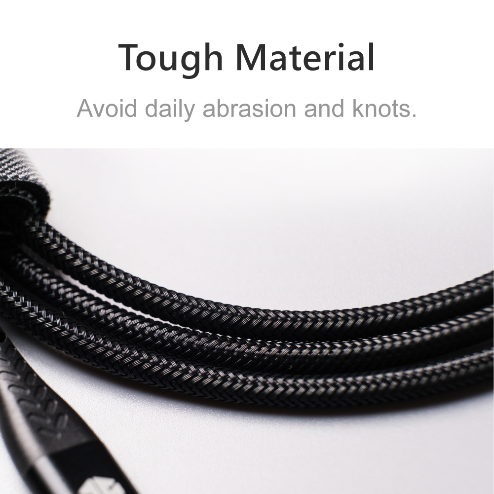 - ตัวสายยาว 1.6 เมตร หุ้มด้วยวัสดุ Braided Nylon และ Aluminum Alloy แข็งแรงทนทาน และผ่านการทดสอบแรงดึง (Tensile Test)