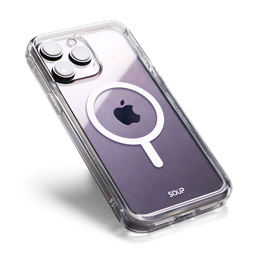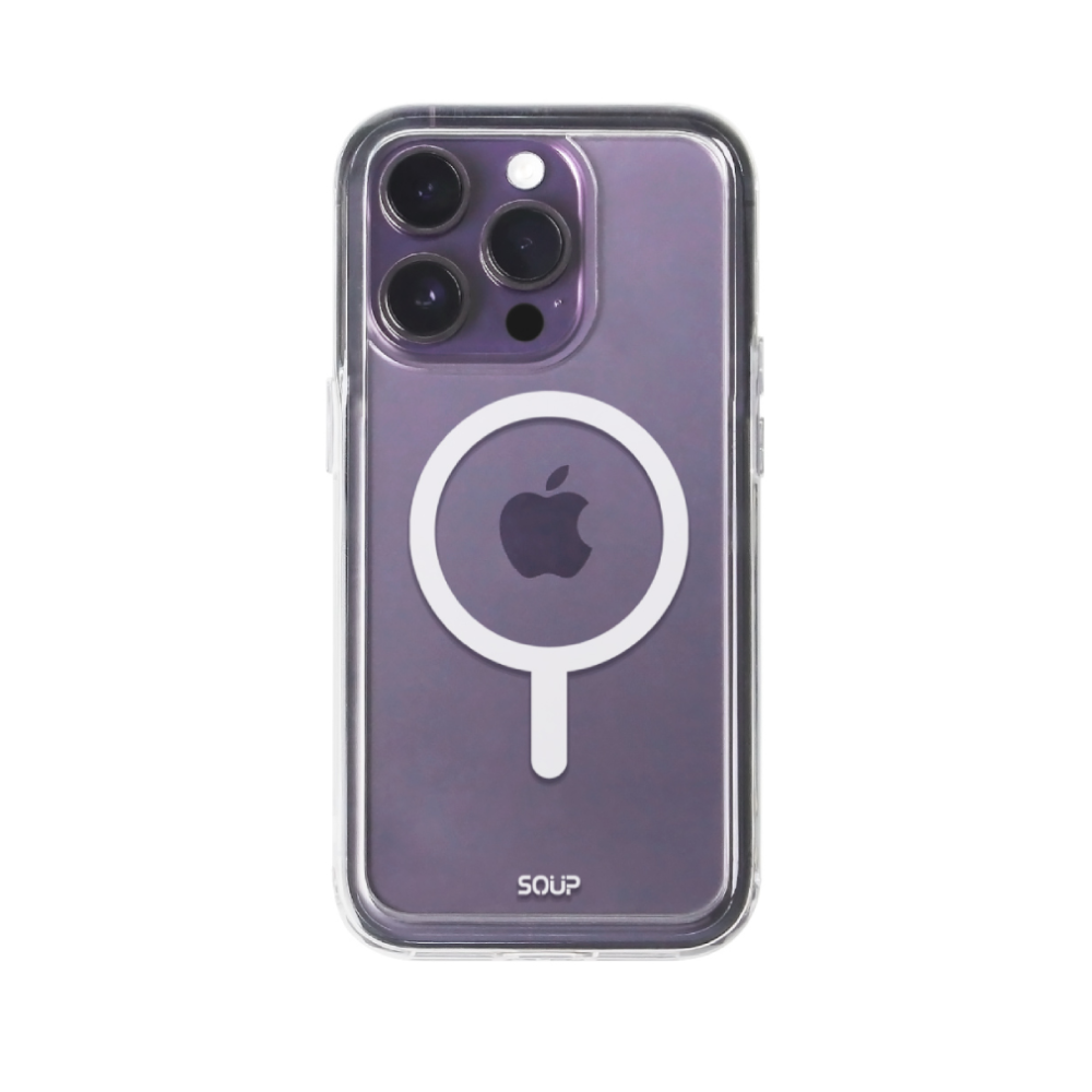 - SOUP Crystal Case with MagSafe เคสกันกระแทกดีไซน์แบบใสสามารถโชว์สีและดีไซน์ได้รอบตัวเครื่อง แบรนด์พัฒนาต่อยอดการปกป้องจากแบรนด์ Solide