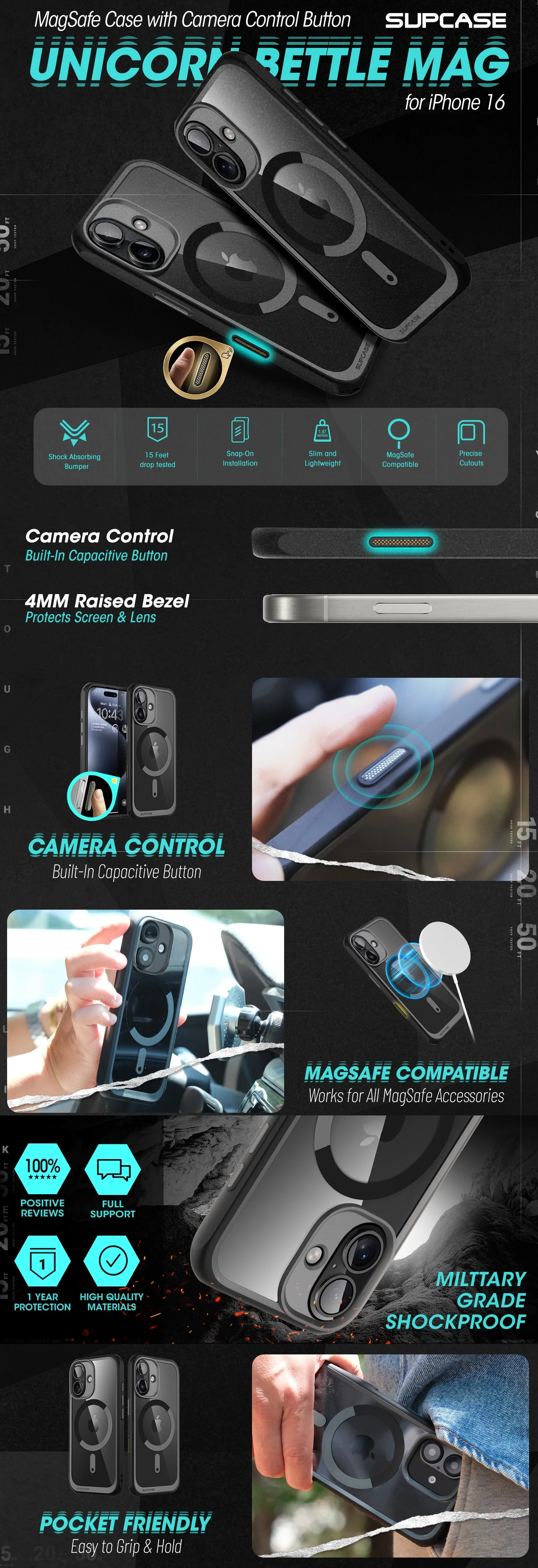 Supcase Unicorn Beetle MagSafe with Kickstand เคส iPhone 16 - Black