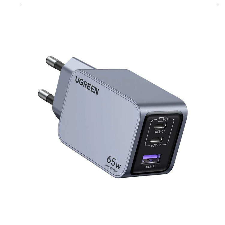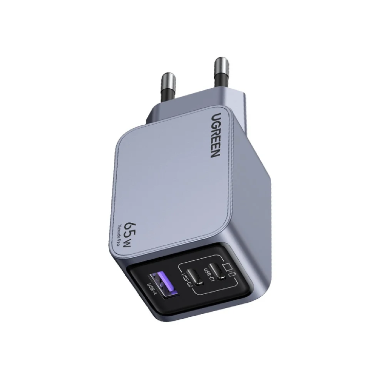 UGREEN X755 Wall Charger 65W USB Port 1 + PD2 GaN Fast Charger (Thai Plug) (Adapter 2Type-C | 1Type-A | PD | PPS | QC3.0 | GaN) - Alu Grey